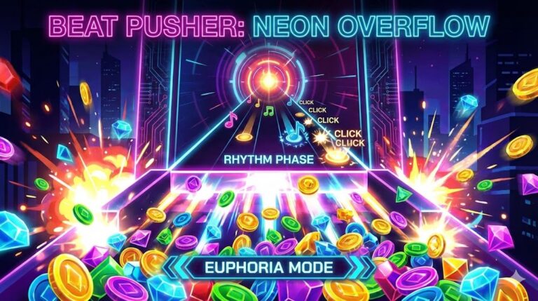 BEAT PUSHER: NEON OVERFLOW は、リズムゲームとコイン落としゲームを融合したユニークなブラウザゲームです。